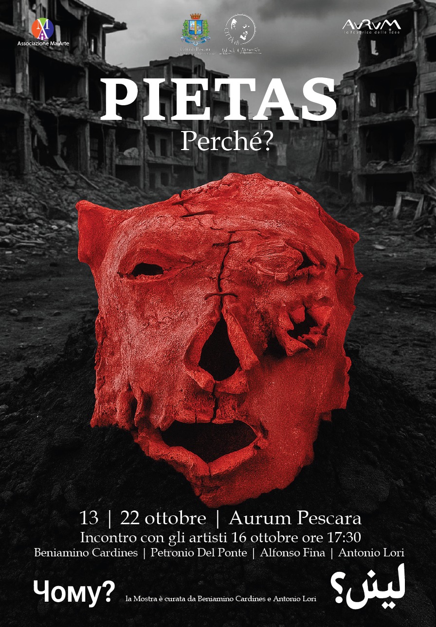 Dal 13 al 22 ottobre 2025, presso l’Aurum – La Fabbrica delle Idee di Pescara, si terrà la mostra-evento “Pietas”, un progetto collettivo che trasforma l’arte in strumento di denuncia e riflessione sui temi più drammatici del nostro tempo: guerre, genocidi, stermini e violenze perpetrate dall’uomo in nome della religione, del potere e di antichi conflitti mai sopiti.