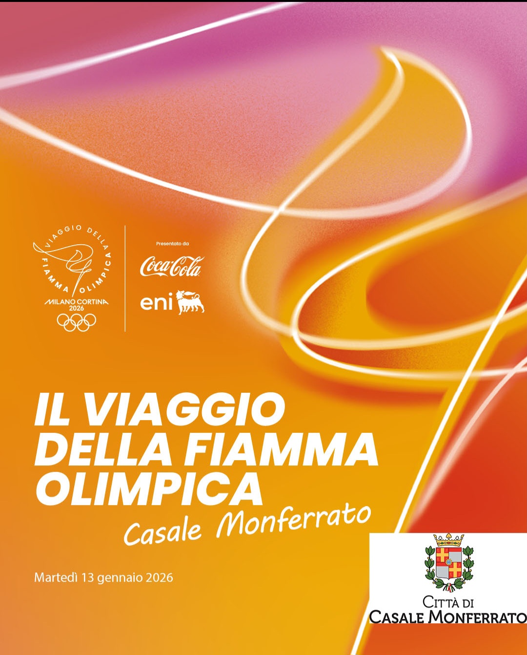 La Fiamma Olimpica farà tappa a Casale Monferrato martedì 13 gennaio 2026, con un percorso cittadino che prenderà avvio alle 15,26 da Oltreponte e si concluderà alle 16,28 in via Negri.