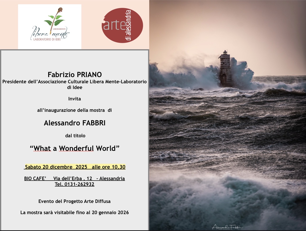 “Con la mostra dell’artista Alessandro FABBRI proseguono gli appuntamenti del Progetto ARTE DIFFUSA, eventi dedicati all’Arte presso alcuni locali della nostra Città.