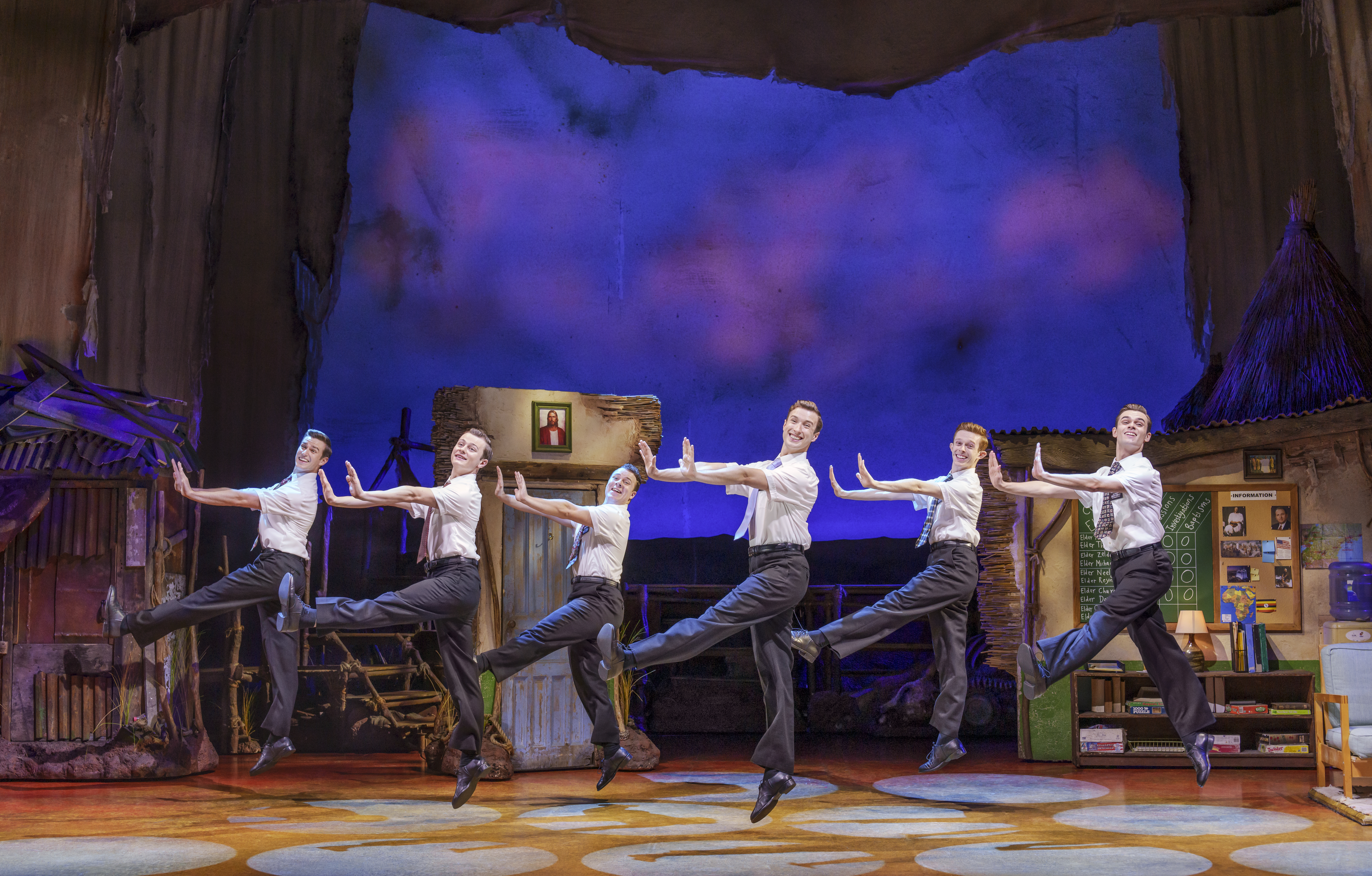 Spettacolo politicamente scorretto e dissacrante che opera una critica spietata agli assiomi intransigenti della religione senza per questo rinunciare alla spiritualità, “The Book of Mormon” si distingue per le molteplici e diverse sfaccettature con le quali vengono affrontati i temi che non sono relegati solo a quello religioso ma allarga la sua satira ad altri aspetti della società attuale, inquadrata attraverso una lente di ingrandimento che ne esaspera la tipologia. E lo fa con un testo intelligente che non rinuncia neppure a termini e atteggiamenti espliciti che potrebbero apparire eccessivi ma non lo sono, essendo in linea con tutta la storia narrata e costituendo anche quel po’ di sale in più che infonde allegria. Tutto è quindi messo bene in evidenza come quella del dorato angelo del giudizio che dall’alto del palcoscenico suona la sua tromba, un angelo che poi appare anche in carne e ossa sulla scena così come vi compaiono altri personaggi “celesti” quali Gesù Cristo che secondo il Libro di Mormon visitò gli americani dopo la sua resurrezione o Joseph Smith in abiti ottocenteschi. Per non parlare di Satana che con i suoi angeli decaduti visita in sogno Price e che rappresenta una delle scene più esaltanti sia nella coreografia che nella musica e nel canto. Del resto non c’è musical che si rispetti se non possiede una colonna sonora e una coreografia appropriate. E qui le due cose sono più che eccellenti, essendo variegate e dei generi più disparati: si va dal pop al folk, dal tip tap al melodico senza tralasciare neanche la disco. A renderle al massimo livello è una compagnia di artisti straordinari che non solo cantano e ballano alla grande ma sono perfetti anche nella recitazione. Divertimento garantito, provocato, scena dopo scena, da mille gags in un ritmo frenetico tanto che l’intervallo serve al riposo non solo agli artisti ma anche al pubblico che necessita di una sosta per riprendersi dalle tante risate istigate dalla rappresentazione.