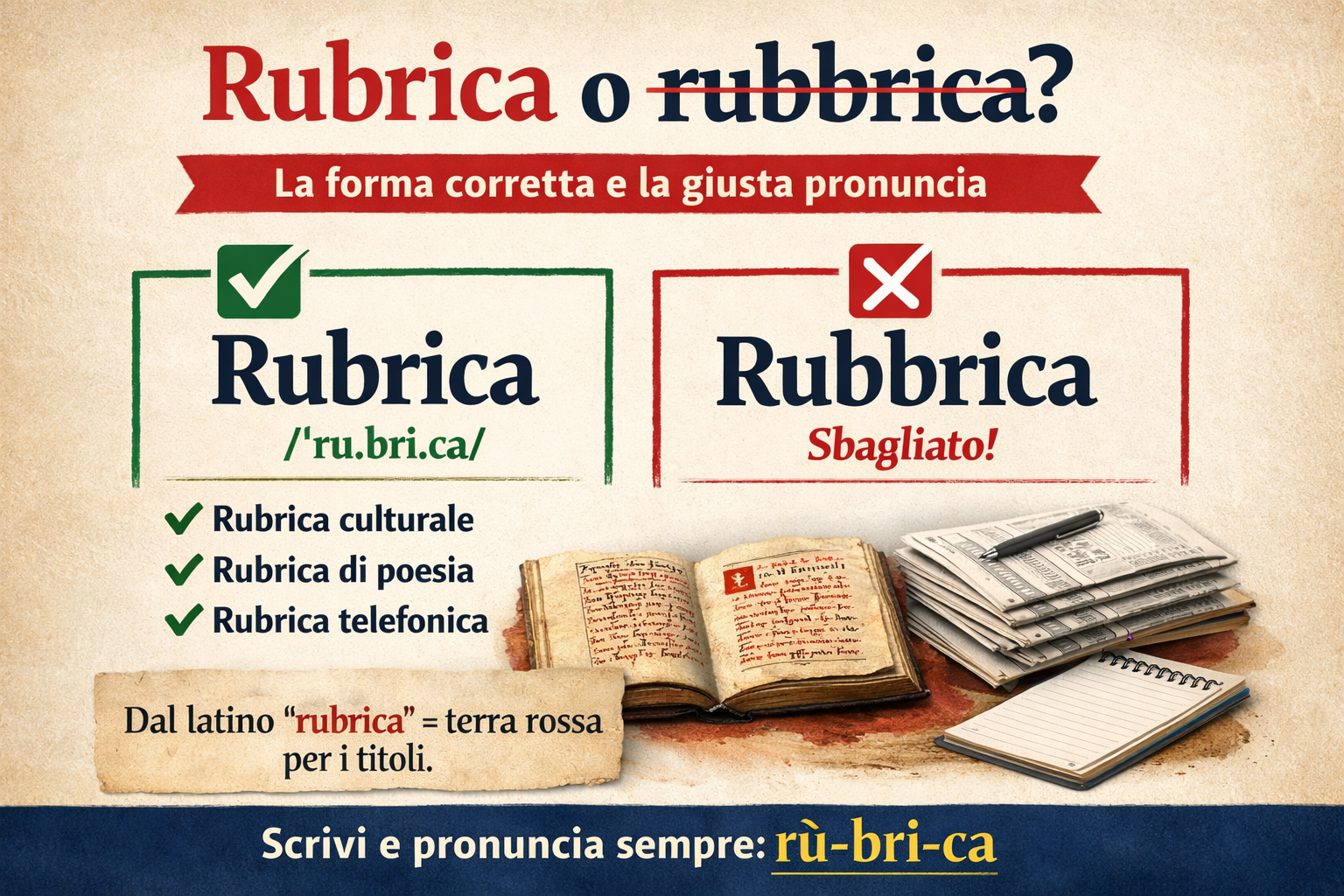 C’è una parola che nei giornali, nei siti e nei palinsesti culturali compare ogni giorno, eppure continua a generare dubbi: si scrive rubrica o rubbrica? Una domanda semplice solo in apparenza, che tocca il cuore della precisione linguistica.