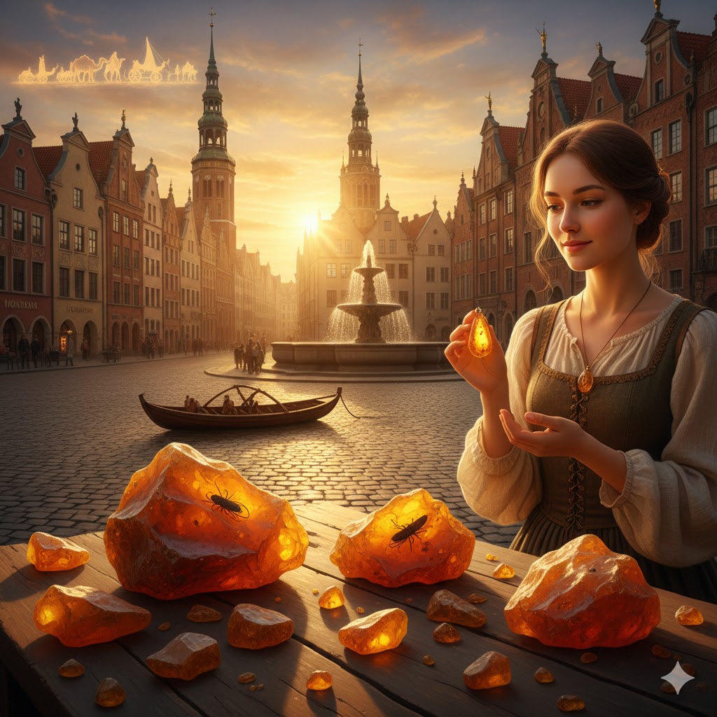 La città, con la sua architettura che fonde stili gotici, fiamminghi e barocchi, racconta di mercanti facoltosi e di una Lega Anseatica che dominava i mari. Ogni angolo, dalla Fontana di Nettuno alla maestosa Basilica di Santa Maria, riflette la ricchezza accumulata grazie a quel materiale prezioso e traslucido che racchiude in sé segreti preistorici.